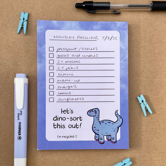Dinosaur Multi-Purpose List Pad - A6 Recycled Notepad