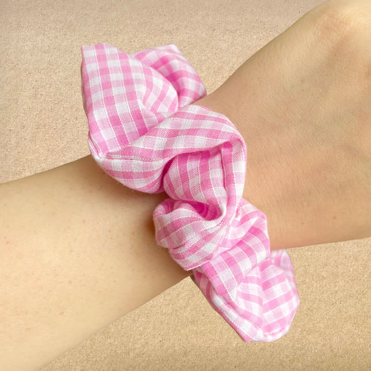 Raspberry Gingham - Recycled Scrunchie