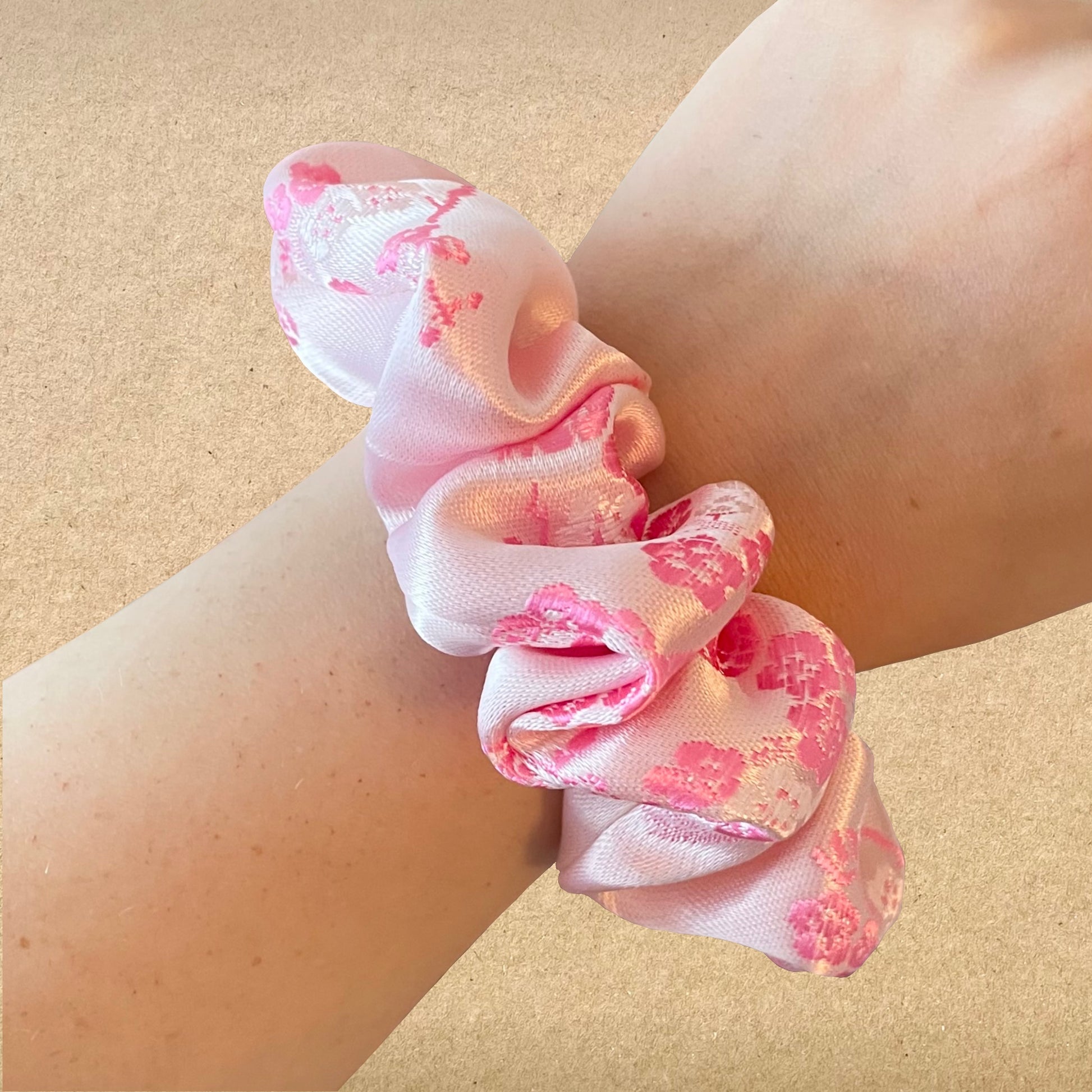 Bring a touch of Japanese-inspired luxury to your day with these beautiful cherry blossom satin scrunchies. As always with Bean and Bloom scrunchies, this product is hand-made from recycled fabric and sewn using thread made from recycled plastic bottles, so you can shop cute with a conscience.