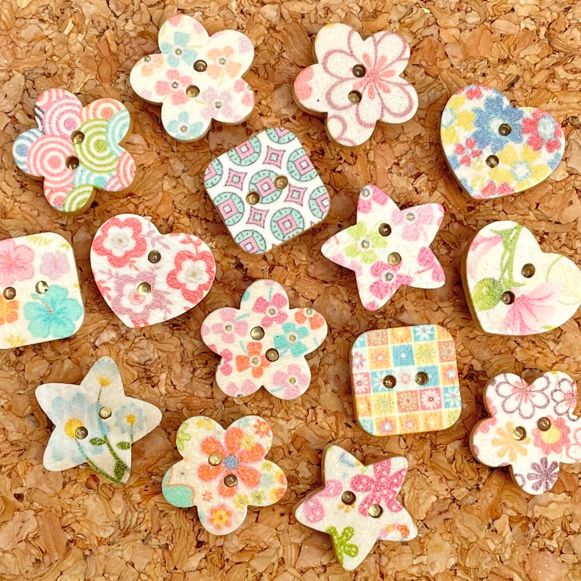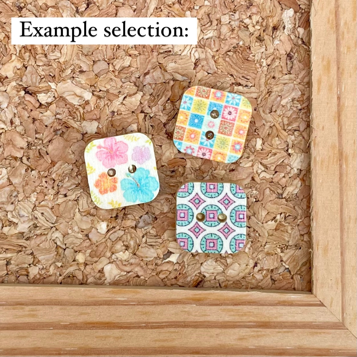 Cute as a button, these decorative push-pins bring a splash of Spring to easily cheer up your work or study space! Each pack contains three assorted pins made from upcycled wooden buttons with a gold-effect pin backing.